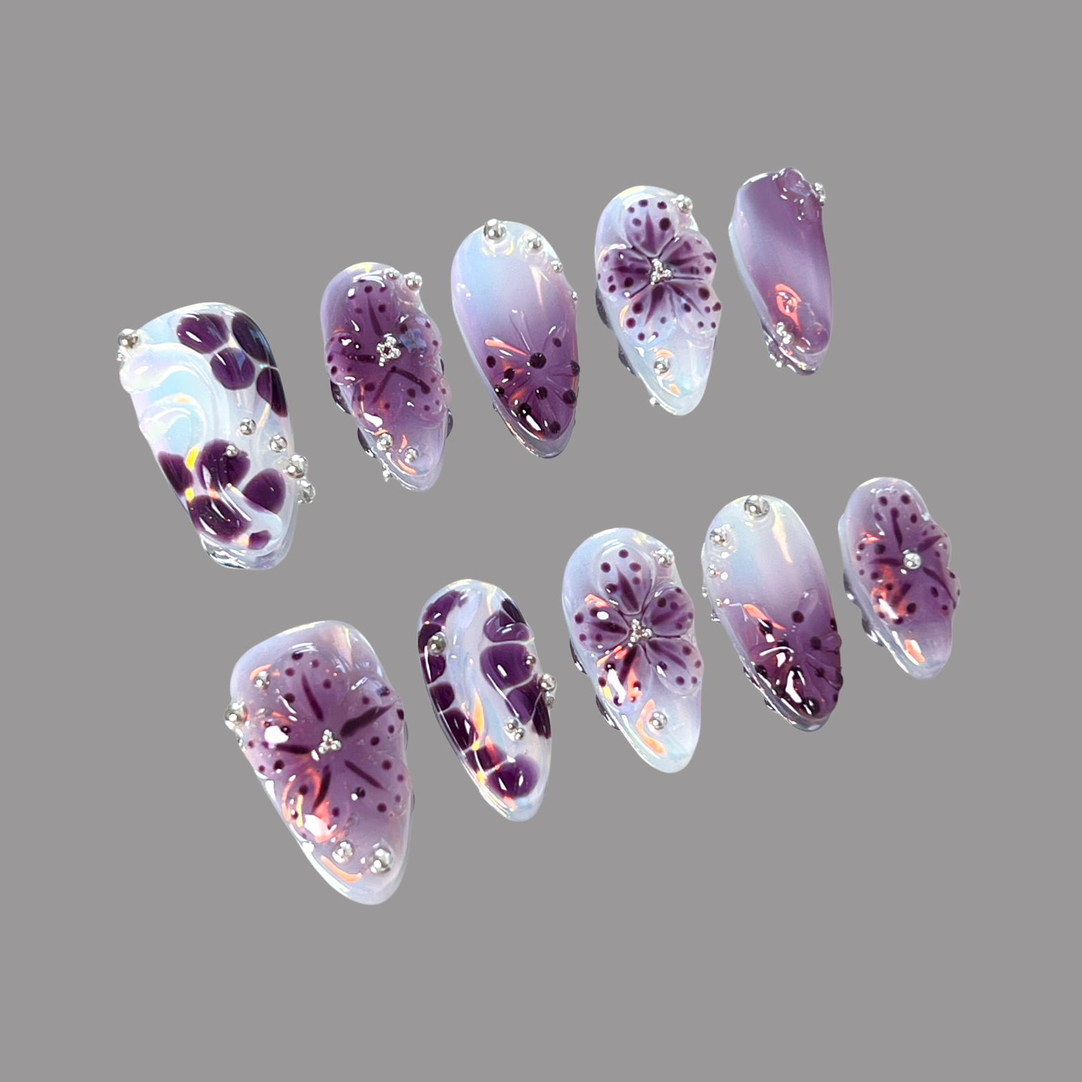 Shrouded in mystery, Moonlit Veil entwines the elegance of moonlight with the allure of serpentine patterns. Deep violet scales ripple beneath a soft gradient glow, as if shadows coil under the silver veil of night. Accented with subtle iridescence, this design is both enchanting and untamed—perfect for those who dare to embrace midnight’s forbidden beauty.