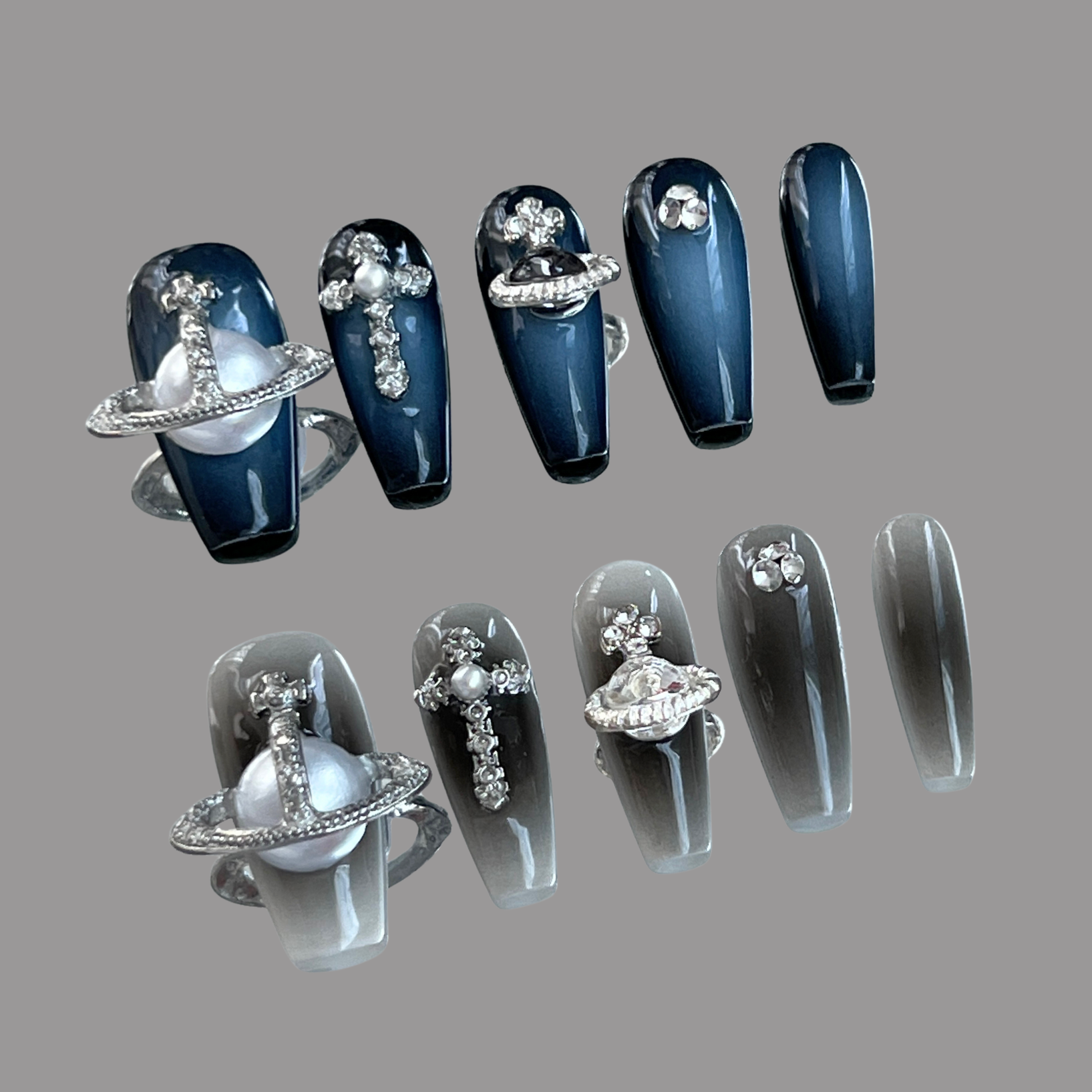PLEASE NOTE: The silver decorations on the nails have slight yellowing due to storage. This item is discounted accordingly. If you mind this, please do not purchase.